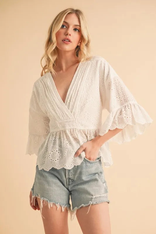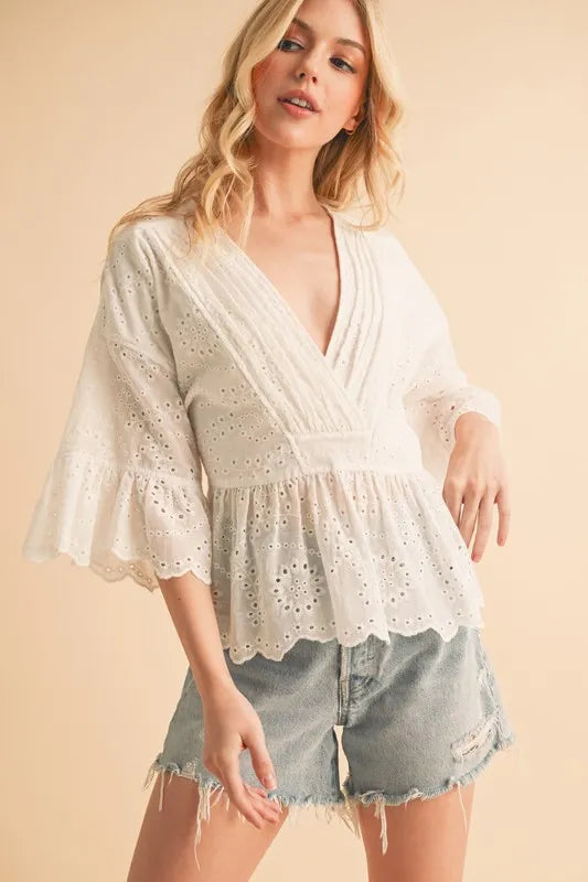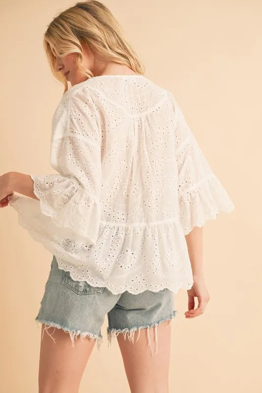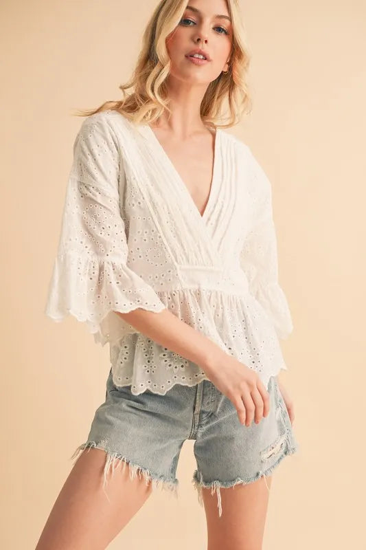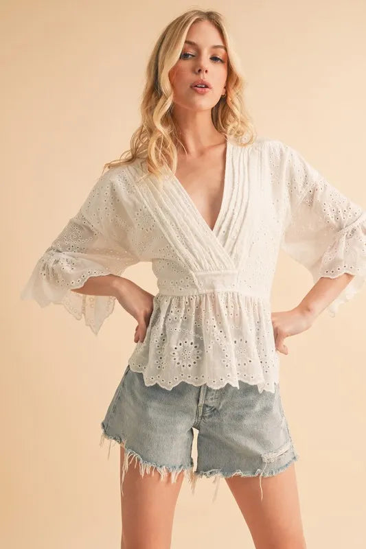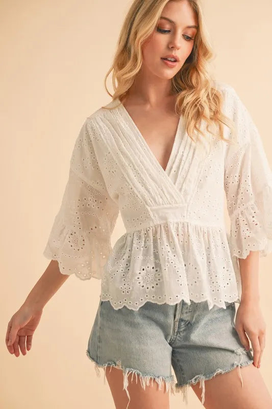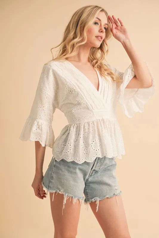 Aemi+Co Flounce Sleeve Eyelet Peplum Top Aemi+Co Flounce Sleeve Eyelet Peplum Top