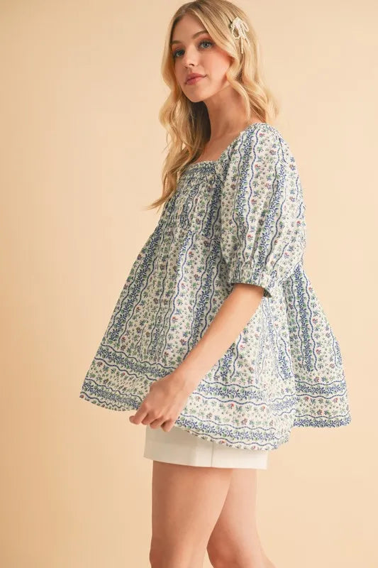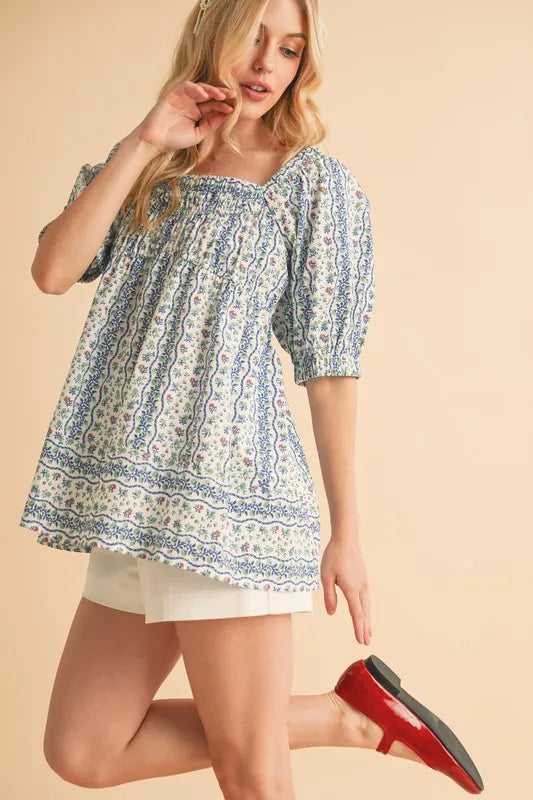 SAGE+FIG Half Button Floral Patchwork Top SAGE+FIG Half Button Floral Patchwork Top